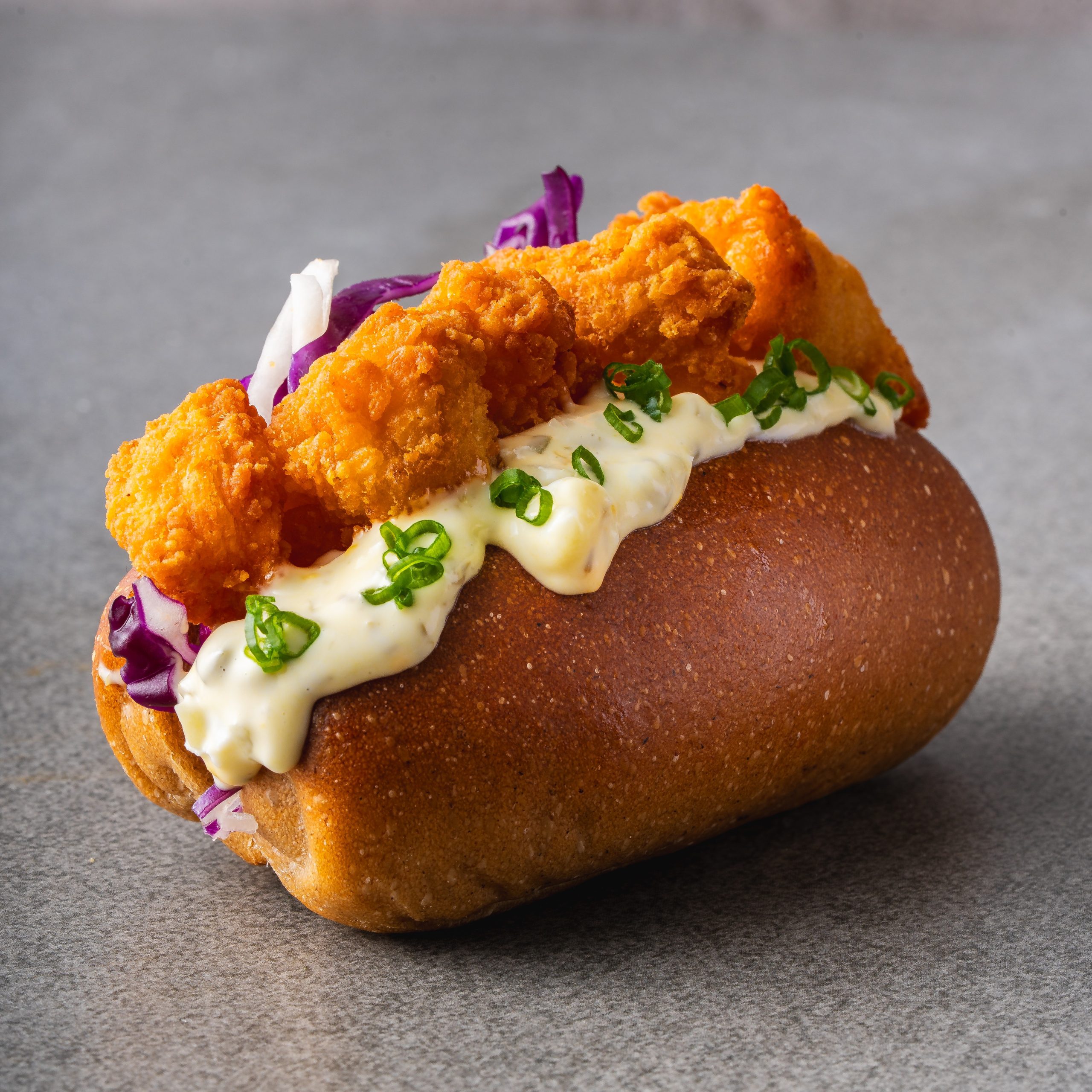 Dark rye bun loaded with crispy chicken karaage, coated in our house-made Nanban sauce, and finished with fresh spring onions.