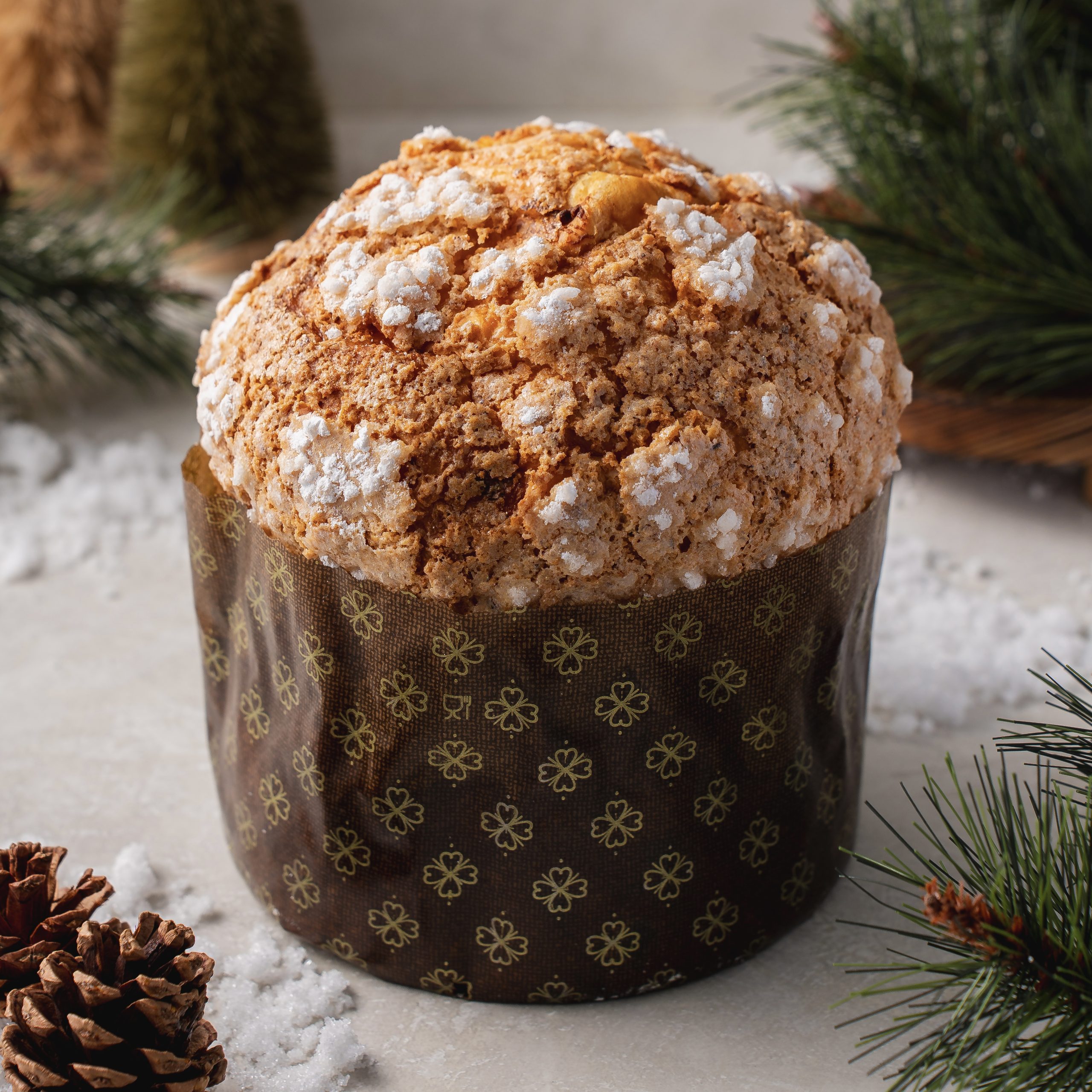 A delicate, slow-fermented Italian bread with rich white chocolate, candied lemon, and zesty orange peel. Light, airy, and crowned with a golden crust, finished with a dusting of icing sugar for a festive touch.