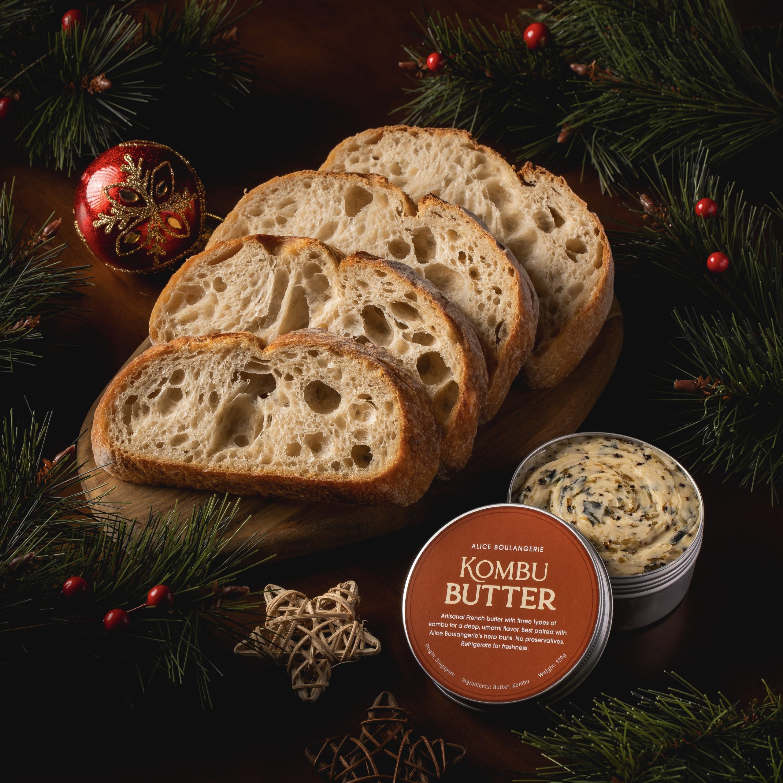 Enjoy loaf of our classic sourdough, paired with our homemade Kombu Butter, offering the perfect combination for a wholesome, savory treat.