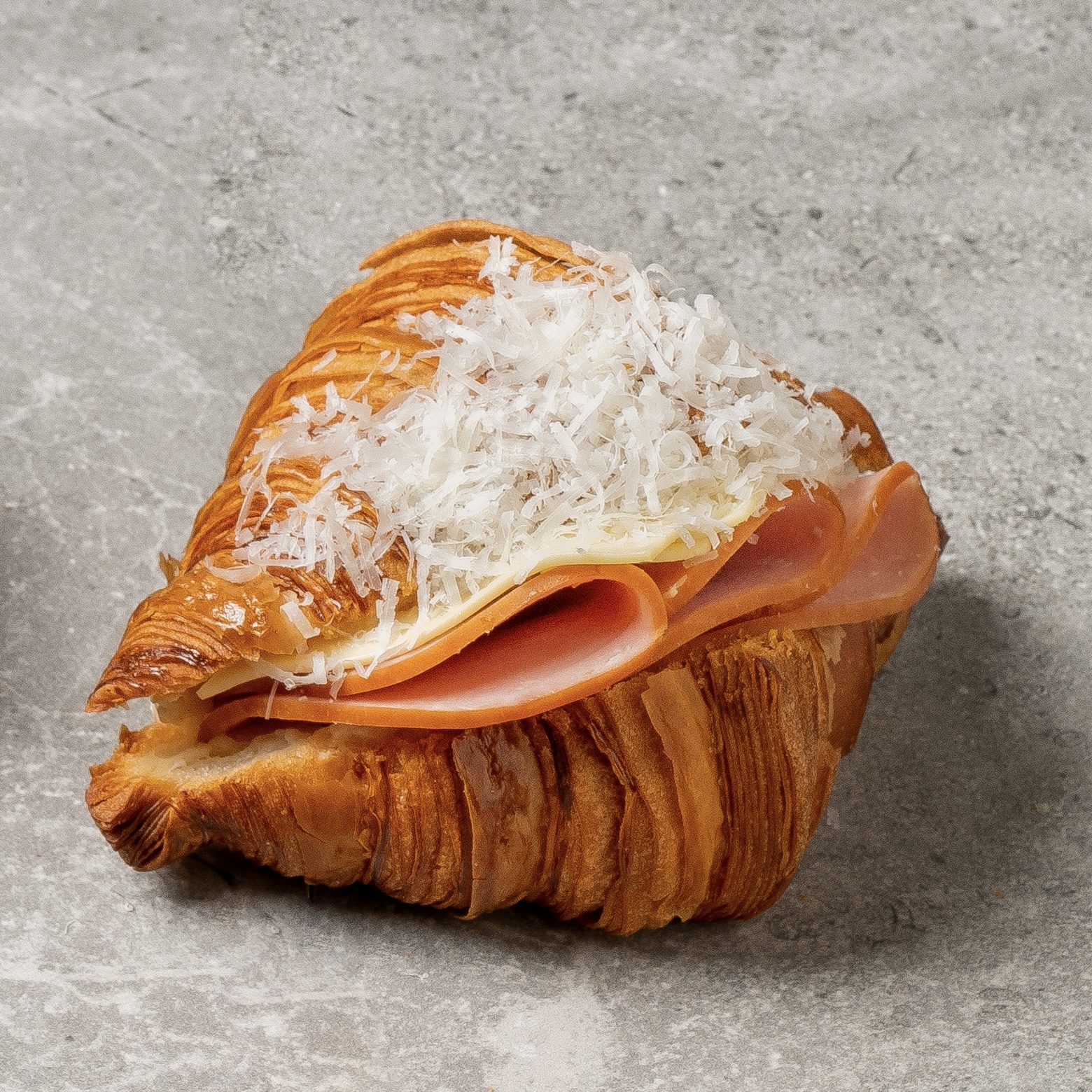 Our signature croissant filled with sliced ham and sliced American Cheddar cheese.