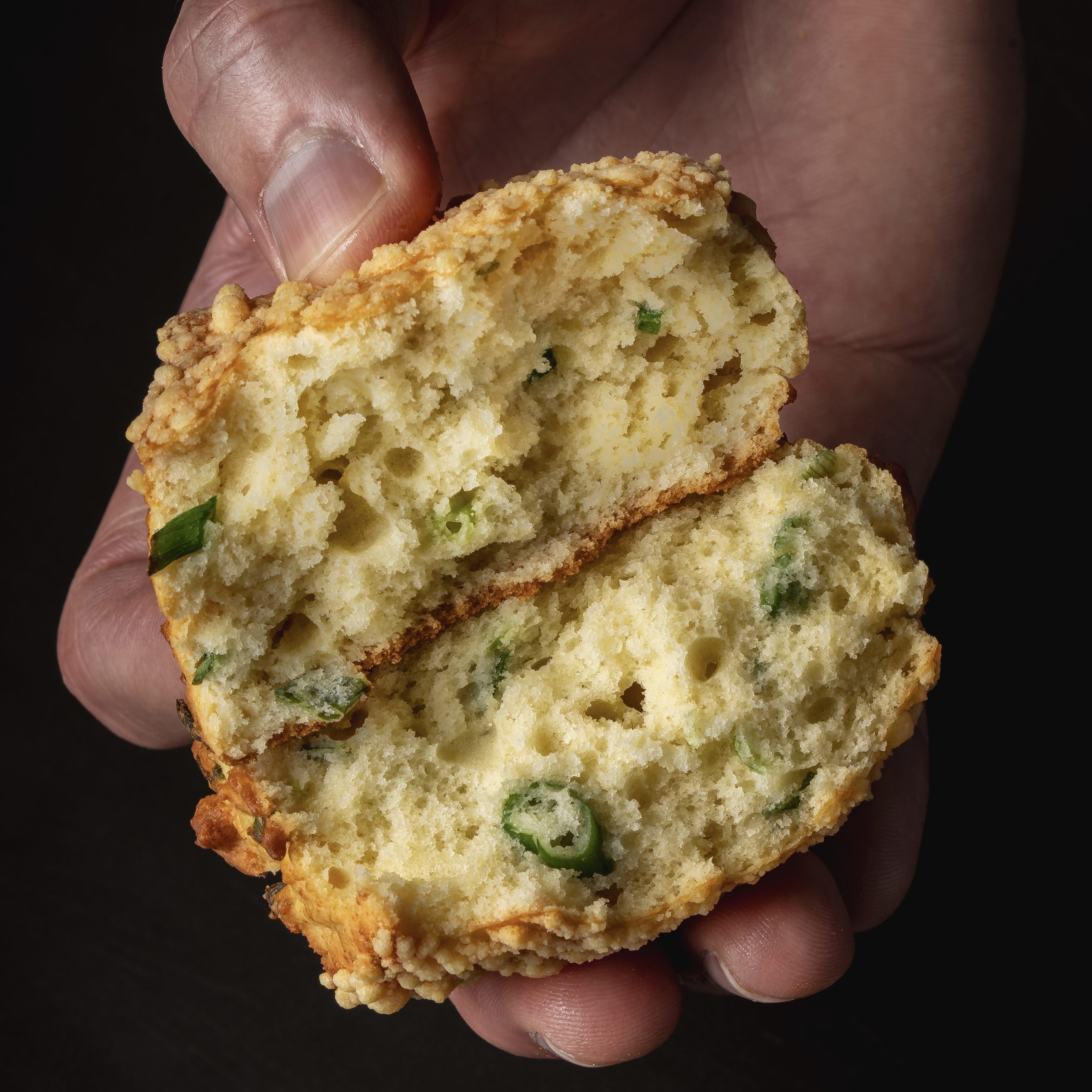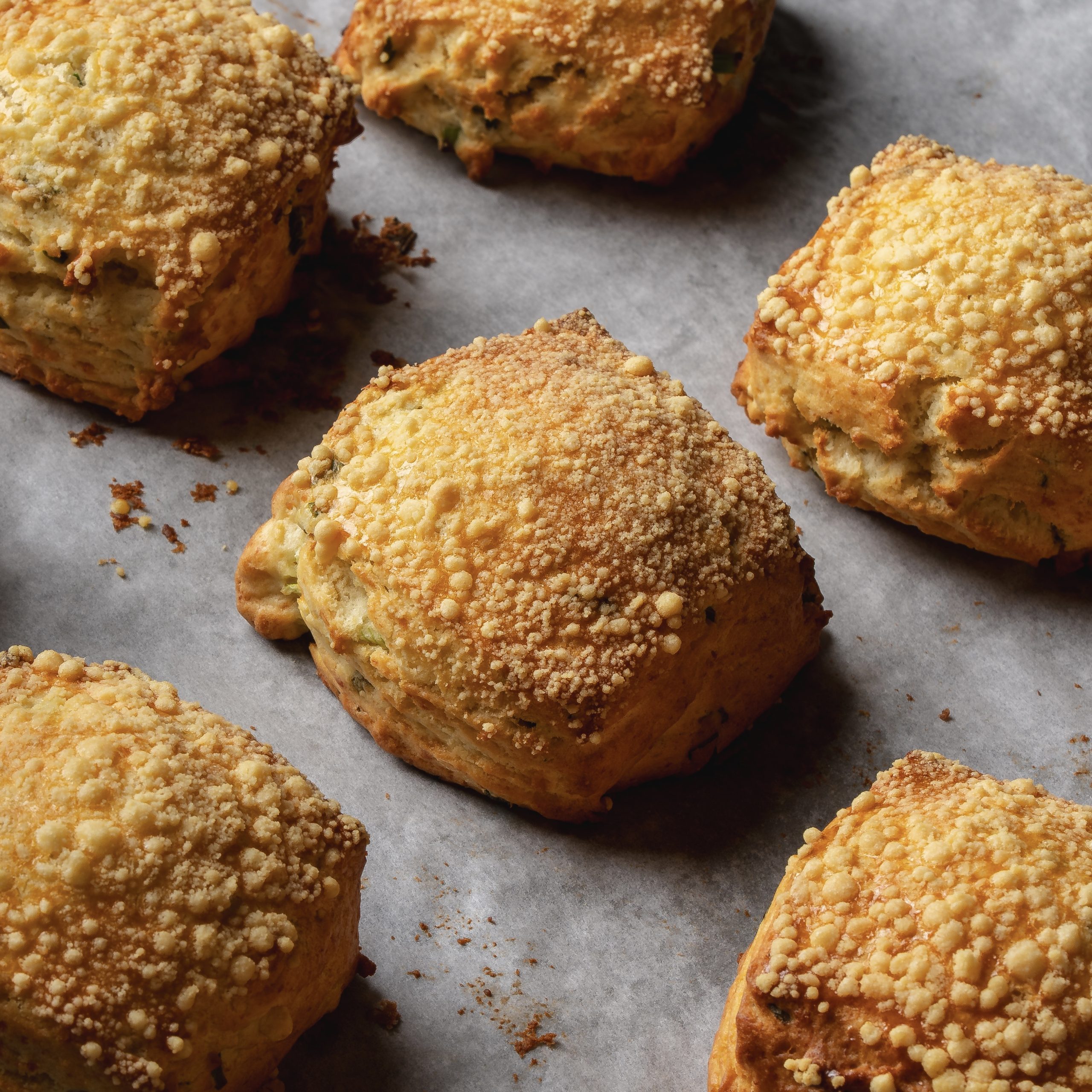 Buttery and aromatic, our Parmesan & Scallions Scone is a savory twist on a classic. The sharp, umami-rich Parmesan pairs beautifully with the fresh, mild sweetness of fresh scallions, creating a flavorful and satisfying bite.